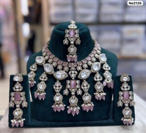 Enhance your bridal charm with this heavy choker set featuring seven latkan earrings and a matching tikka, beautifully crafted to deliver a regal, traditional, and festive elegance.